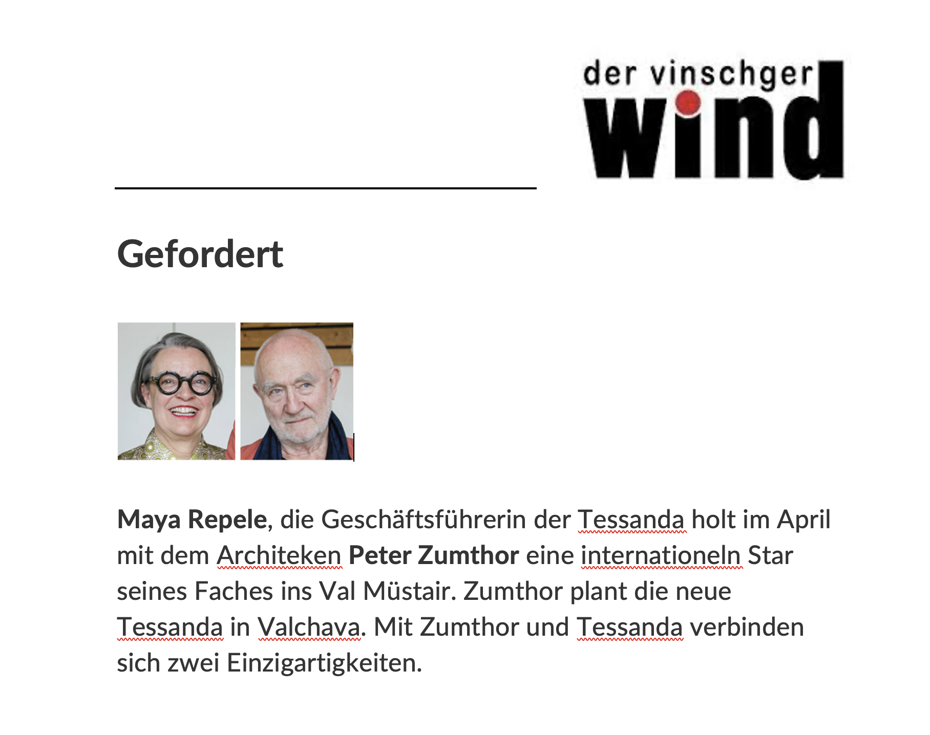 Engadiner Post Online_Cun Zumthor_Sept. 2023