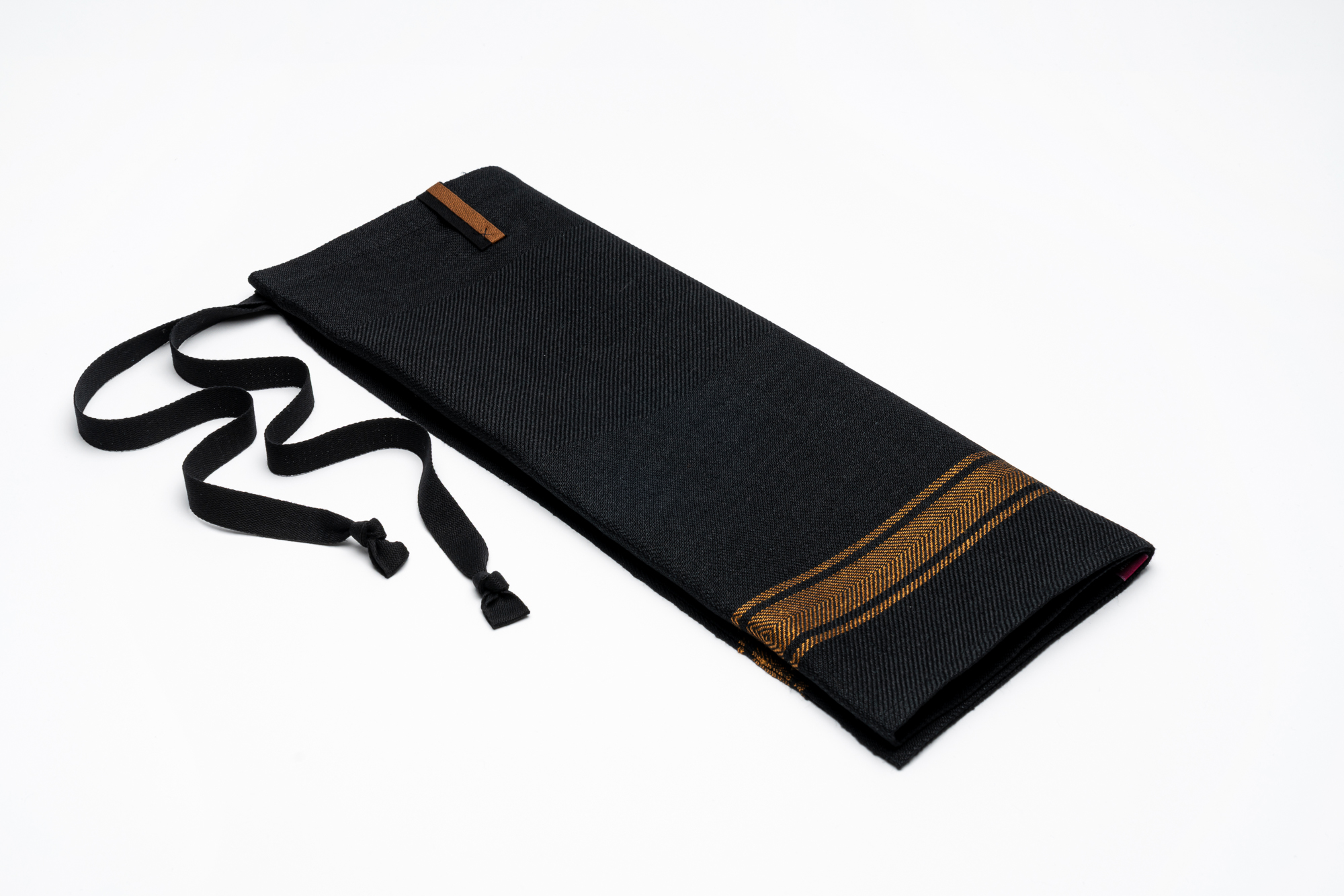 Das saugfähige Gewebe wird aus 100% Leinen in einer versetzten Köper-Bindung gewoben. Die Diagonalen wechseln in regelmässigen Abständen die Richtung, so dass ein gleichmässiges Gewebe entsteht. Der Musterwechsel ist besonders gut sichtbar im farbigen Streifen. Das Tuch wird auf dem Webstuhl quer gewoben – die Webkanten befinden sich deshalb an den kürzen Seiten.