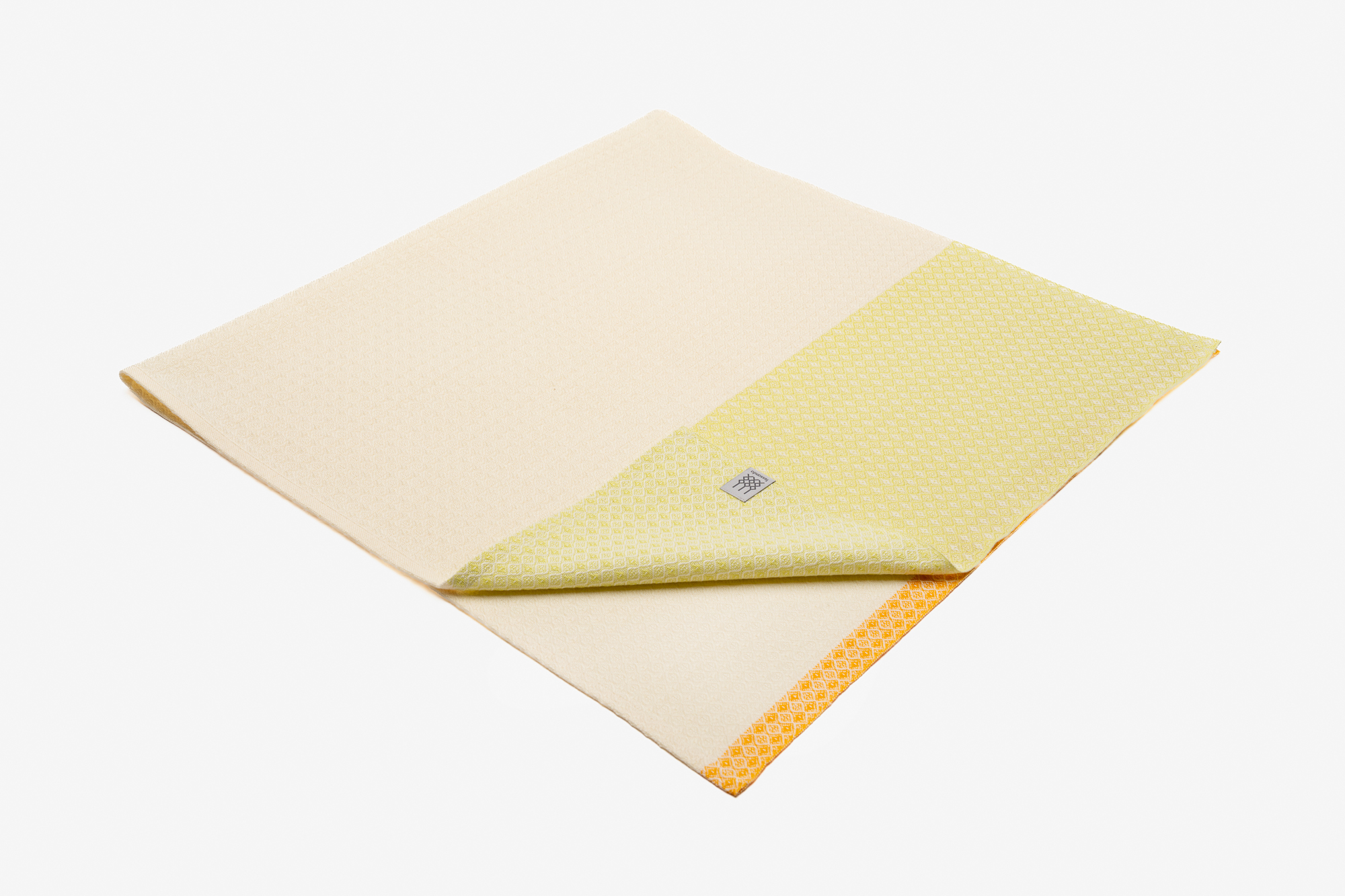 In der hellen Variante von «Pachific» sind die Kettfäden dreifarbig in Mango, Crème und Lindengrün aufgezogen, die unregelmässig breite Längsstreifen bewirken. Der Schussfaden ist einfarbig, entweder in Altrosa, Kaki oder Rohweiss. Es entsteht ein vier-farbiges Gewebe in zwei unterschiedlichen Farbvarianten, die sich farblich bestens kombinieren lassen. Zu den kleinen Hamam-Handtüchern gibt es als Ergänzung die passenden, grossen Hamam-Tücher im Format 180 x 100 cm.
